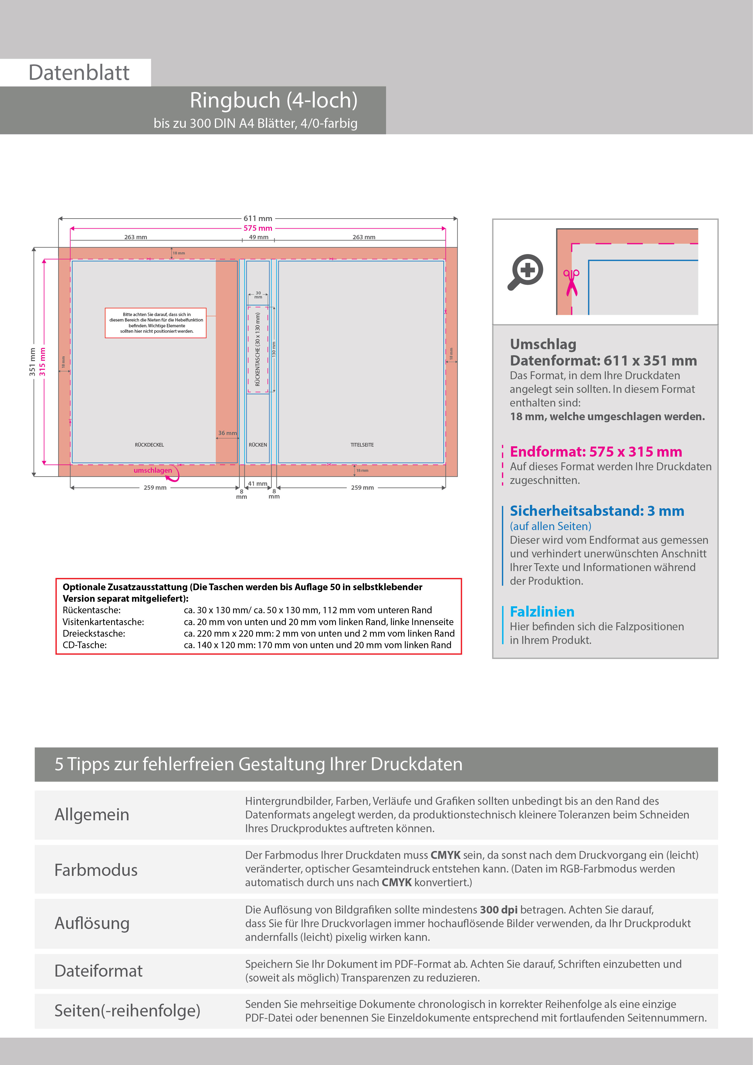 Ringbuch (4-Loch) bis zu 300 DIN A4 Blätter