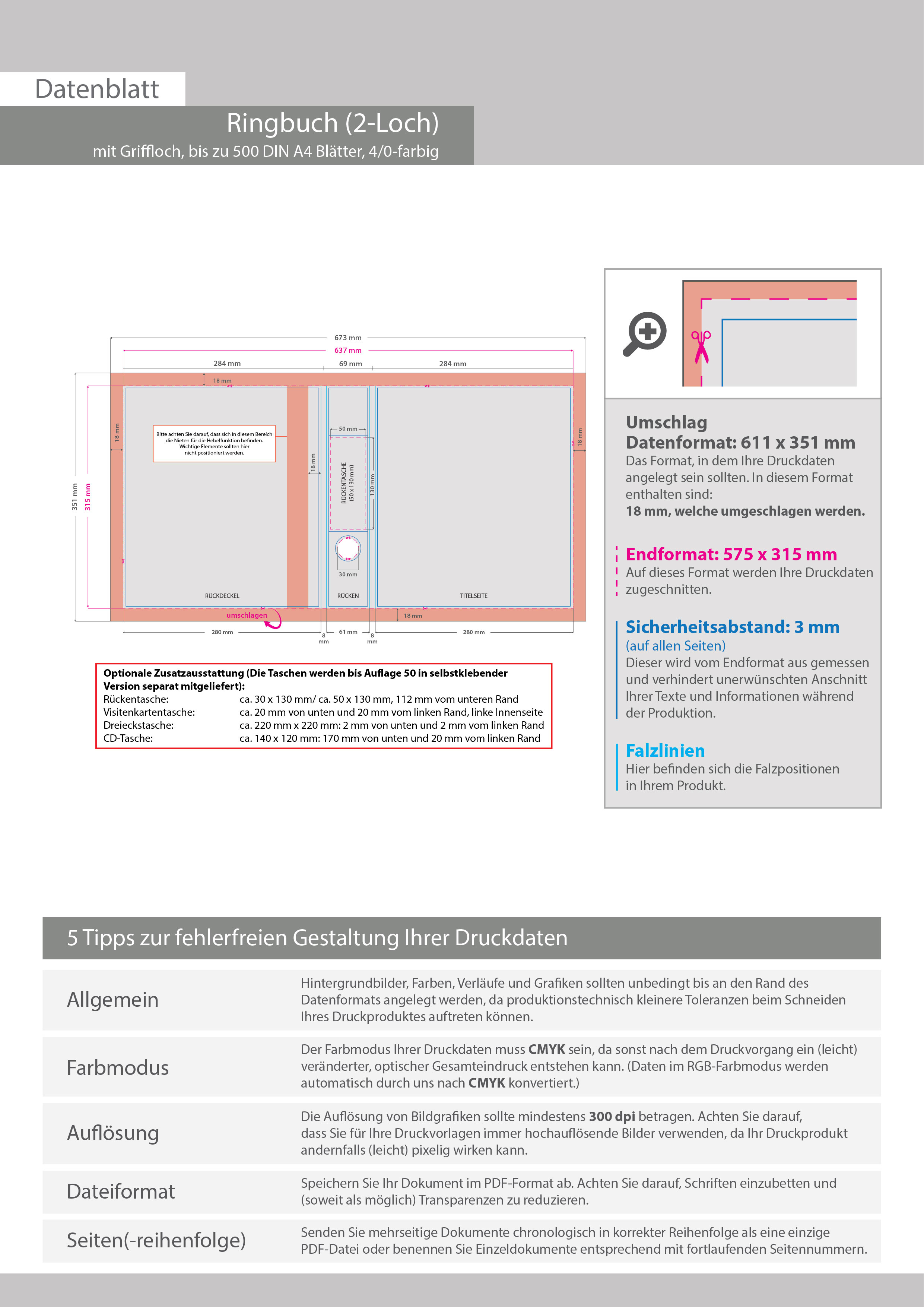 Ringbuch (2-Loch) mit Griffloch bis zu 500 DIN A4 Blätter